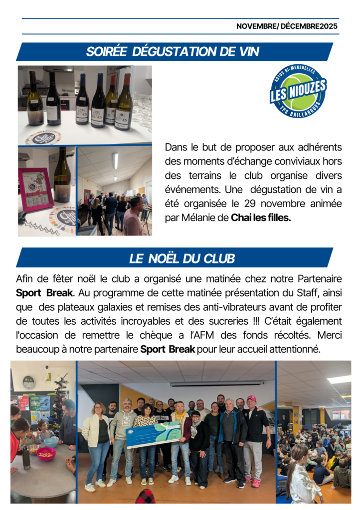 Chers adhérents et adhérentes, nous avons le plaisir de vous présenter LES NIOUZES.